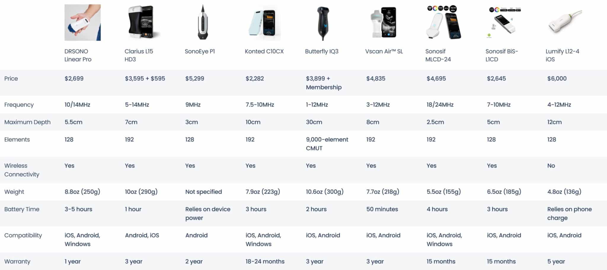Wenn die Kosten beim Kauf einer Linearsonde keine Rolle spielen, werden diejenigen, die die Philips Lumify L12-4 iOS verwendet haben, Ihnen empfehlen, sich für diese superleichte und kompakte Sonde zu entscheiden. Beides ist wichtig für den Venenzugang, da die Sonde beim ultraschallgesteuerten IV-Zugang keinen Druck auf die Venen ausübt.